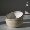 LEX Schale aus schamottierten grauem Ton, aussen unglasiert aber geschliffen, innen türkis glasiert.